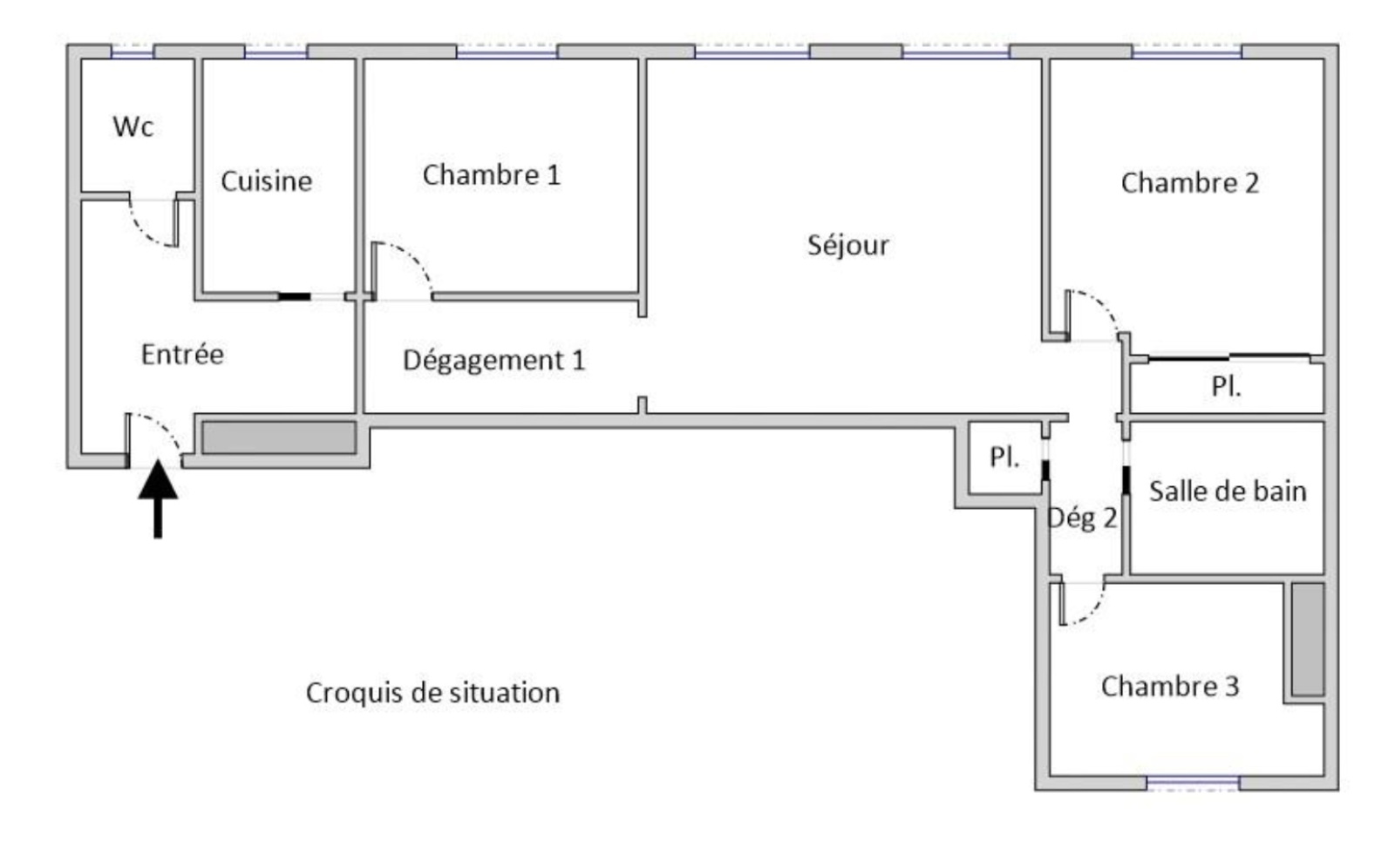 Le bien bénéficiant d'un plan idéal est au 3ème étage avec ascenseur et se compose, d'une entrée avec rangements, d'un séjour de 25m2, d'une cuisine séparée et équipée, de 3 chambres au calme avec rangements, d'une salle de bains et un WC séparé