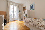 Charme de l'ancien, le bien bénéficie également de parquet massif, de moulures, de fenêtres en double vitrage ainsi que de nombreux rangements.