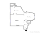 Ce bien, calme et lumineux, se situe au 6ème et dernier étage avec ascenseur. Il se compose d'une entrée, d'un séjour avec cuisine ouverte, d'une chambre avec salle de bains et d'un WC séparé.