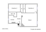 L’appartement en parfait état se compose d'une entrée, d'un séjour, de deux chambres, d'une cuisine équipée et d'une salle d'eau avec WC.