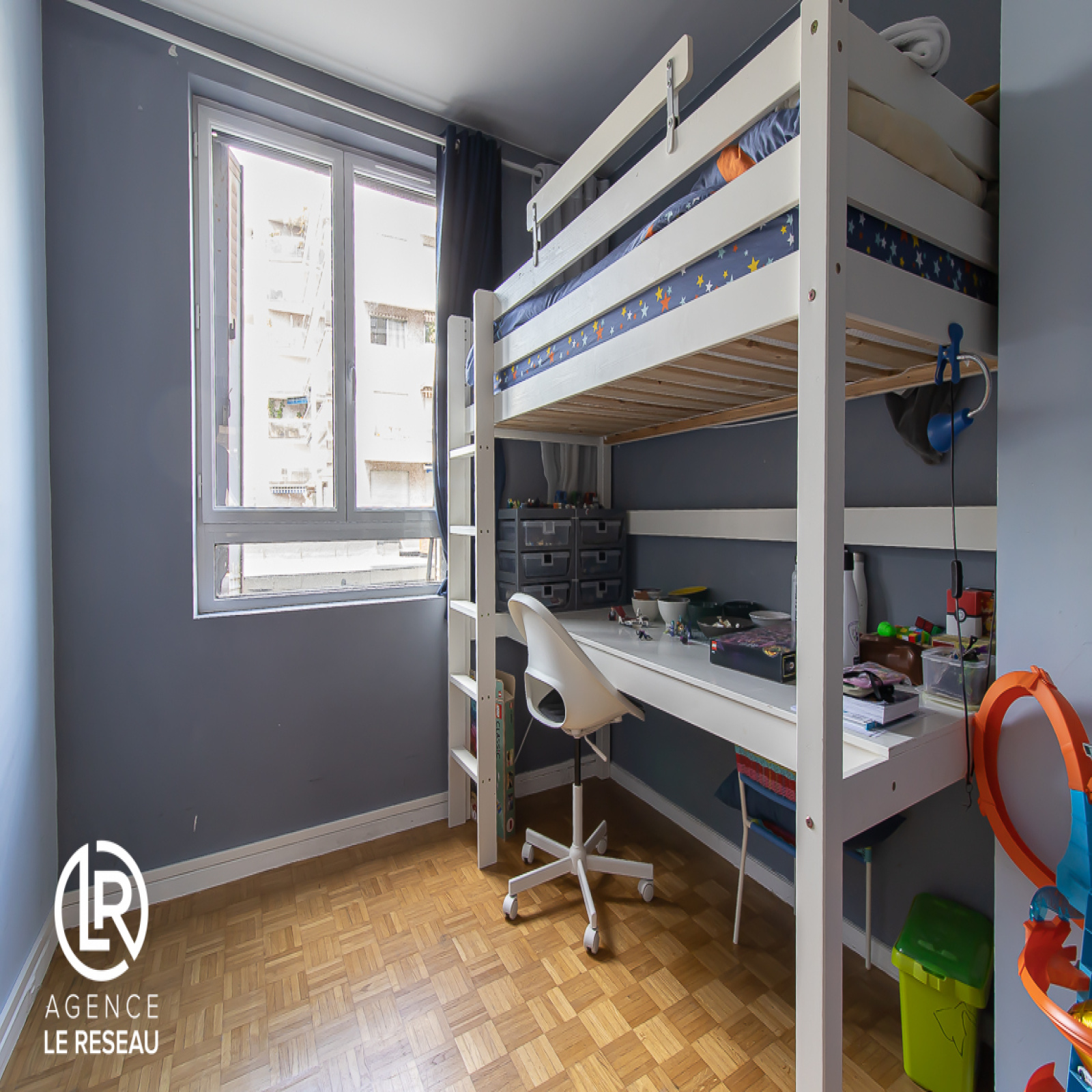 Le bien bénéficie également de parquet massif, de fenêtres en double vitrage et de nombreux rangements.