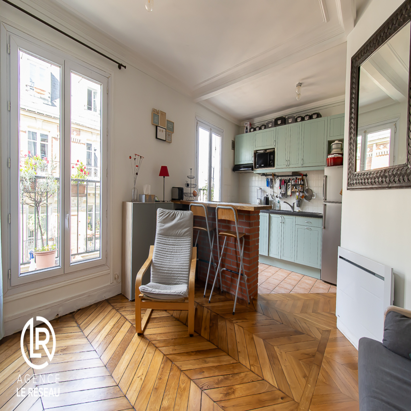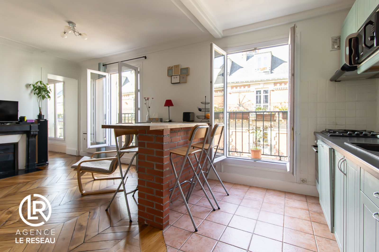 Quartier Batignolles. L'Agence le Réseau vous propose à la vente ce 3 pièces lumineux de 54m² (surface au sol) et 52.12m² (loi Carrez) avec son balcon filant de 10m2 sans vis-à-vis situé rue Lemercier en plein coeur des Batignolles dans un immeuble de 1900, proche du métro Brochant, et au pied de tous les commerces.