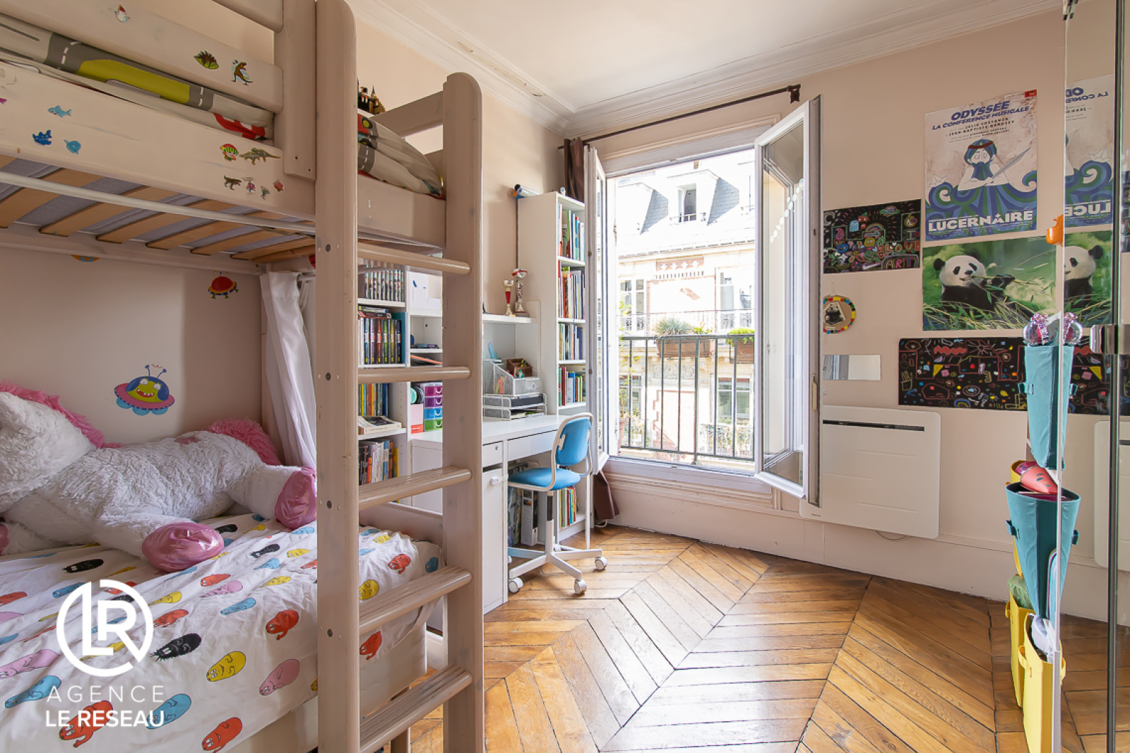 Le bien bénéficie également de parquet massif, de fenêtres en double vitrage,d'une cheminée ainsi que de nombreux rangements sur mesure.
