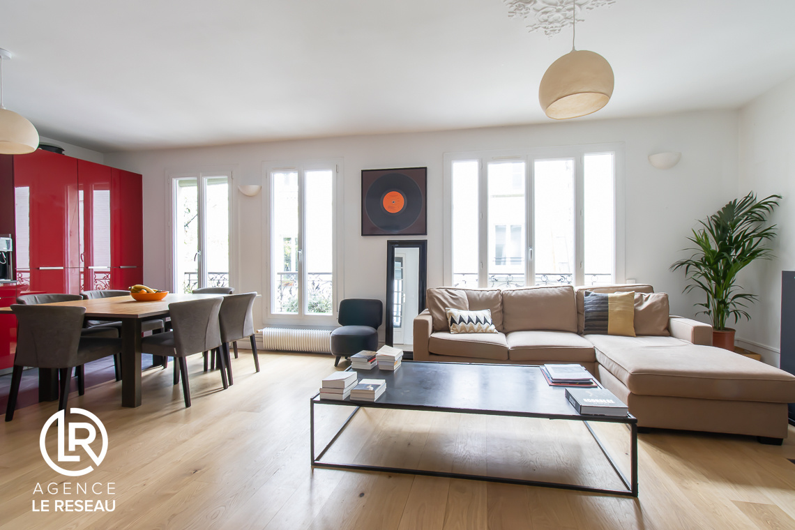 Quartier Brochant. L'Agence Le Réseau vous propose à la vente ce Duplex familial au calme et lumineux de 125m², (123.58m2 Loi Carrez) avec 4 chambres et un bureau, situé rue du Dr Heulin au sein d’un petit immeuble de 1900 à proximité du quartier recherché des Batignolles et à 220m du métro Brochant et au pied de tous les commerces.