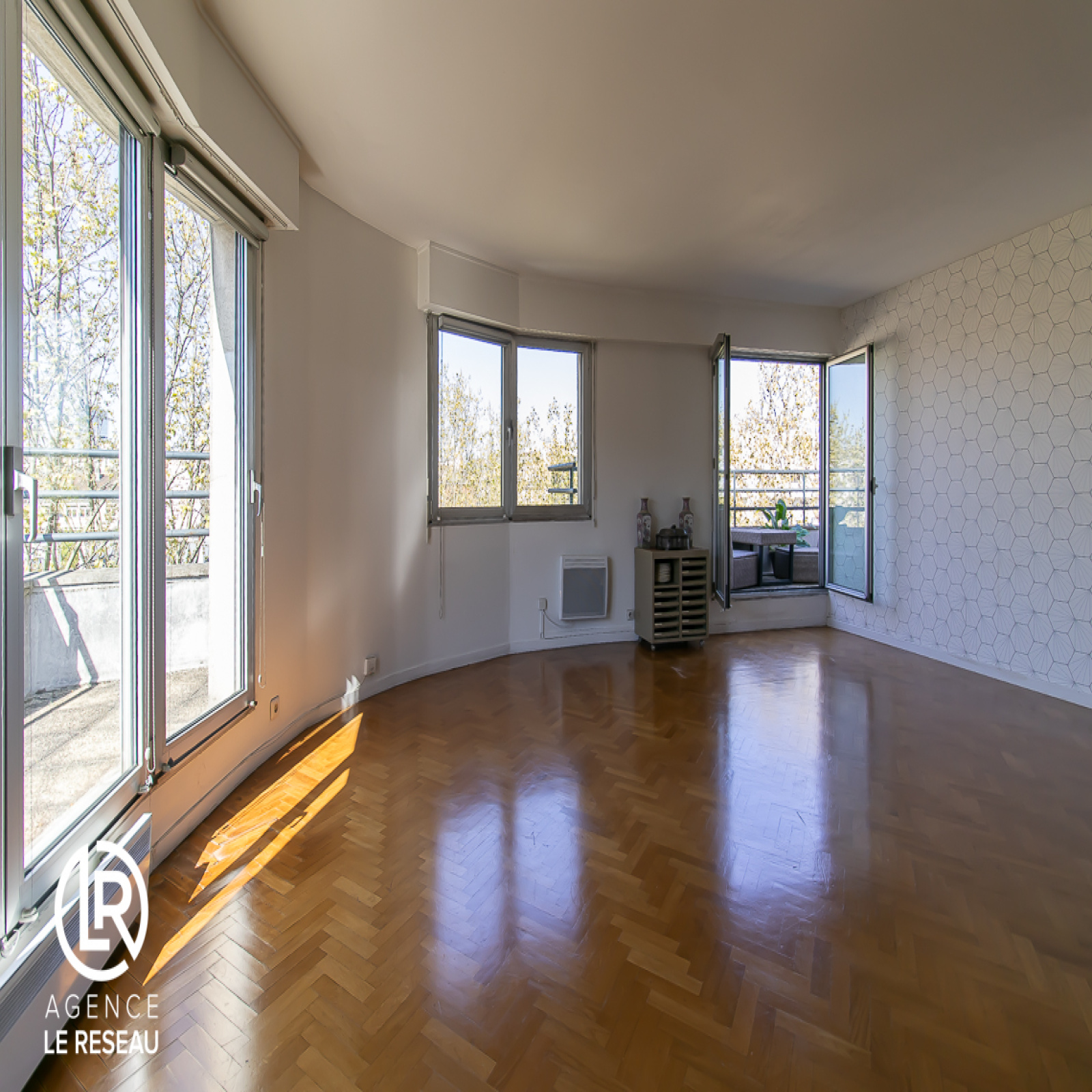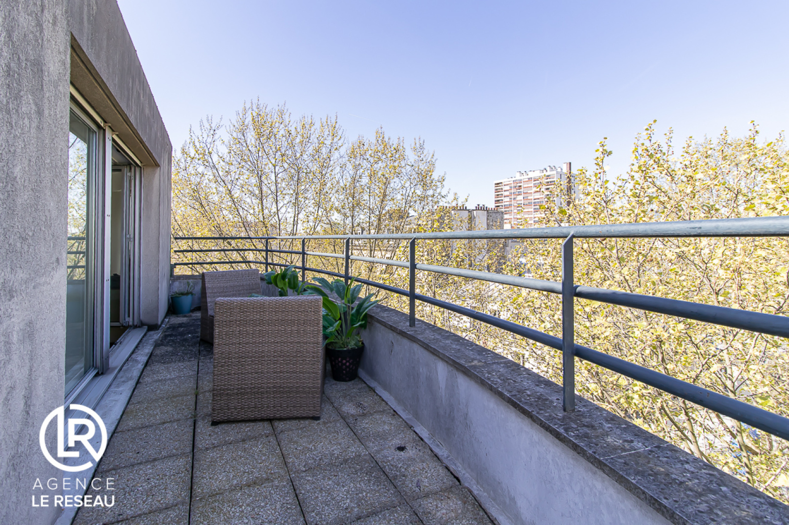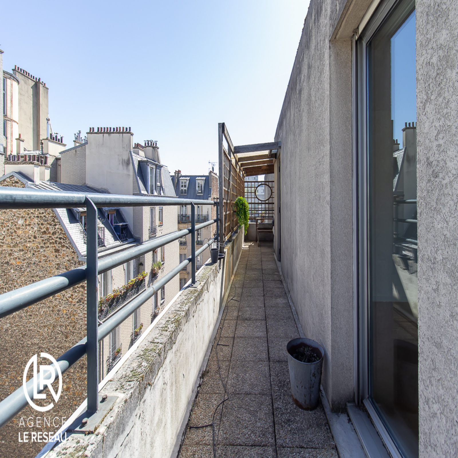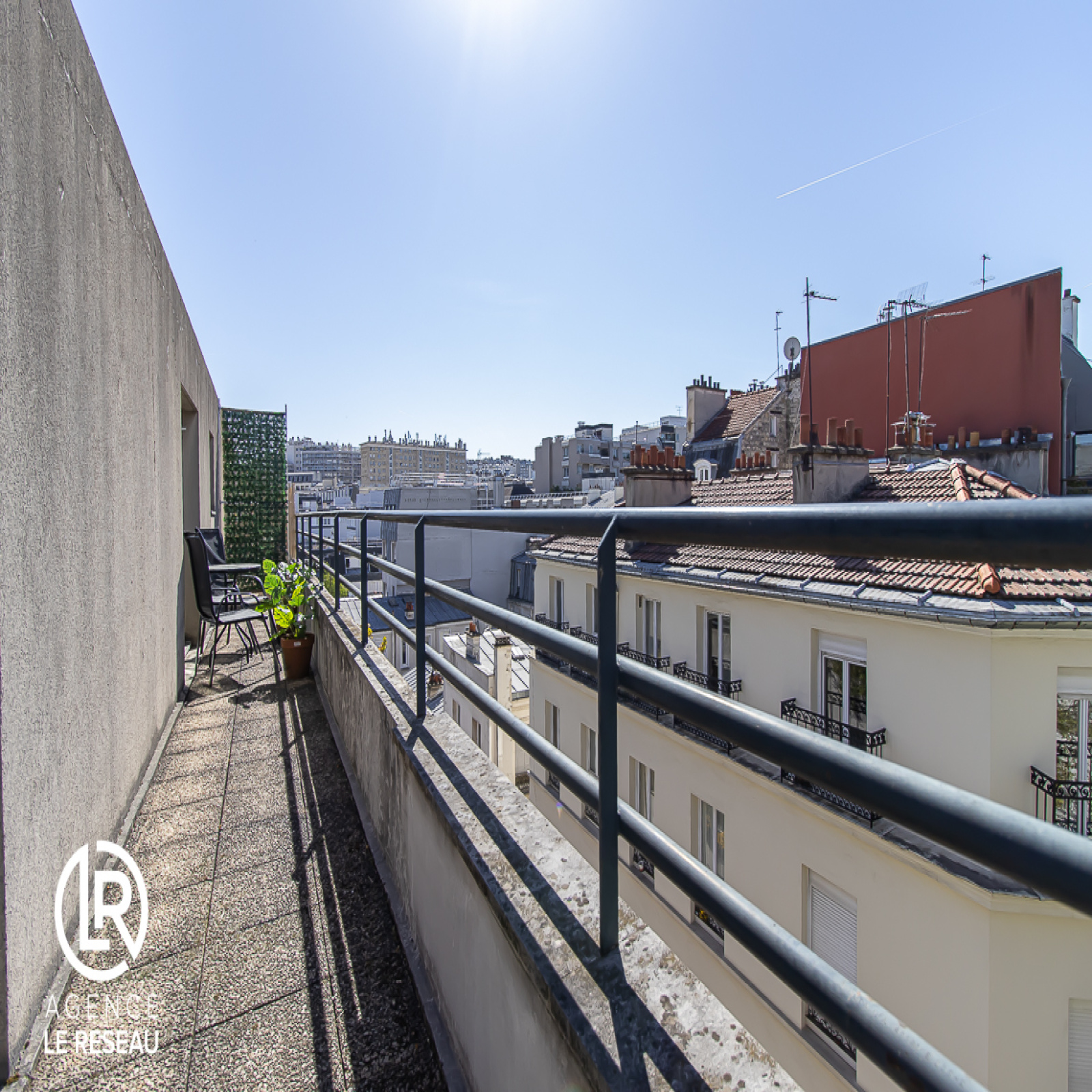 Quartier Grandes Carrières. L' Agence Le Réseau vous propose cet appartement au dernier étage lumineux de 85m2 avec terrasses situé au calme Avenue de Saint-Ouen, au sein d’une résidence standing au pied des commerces, et à 300m du métro Guy Moquet.