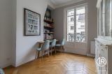 Le bien bénéficie également de parquet massif en point de Hongrie, de moulures, de cheminées, de nombreux rangements sur mesure, ainsi que d'une belle hauteur sous plafond. Une cave est incluse avec le bien.