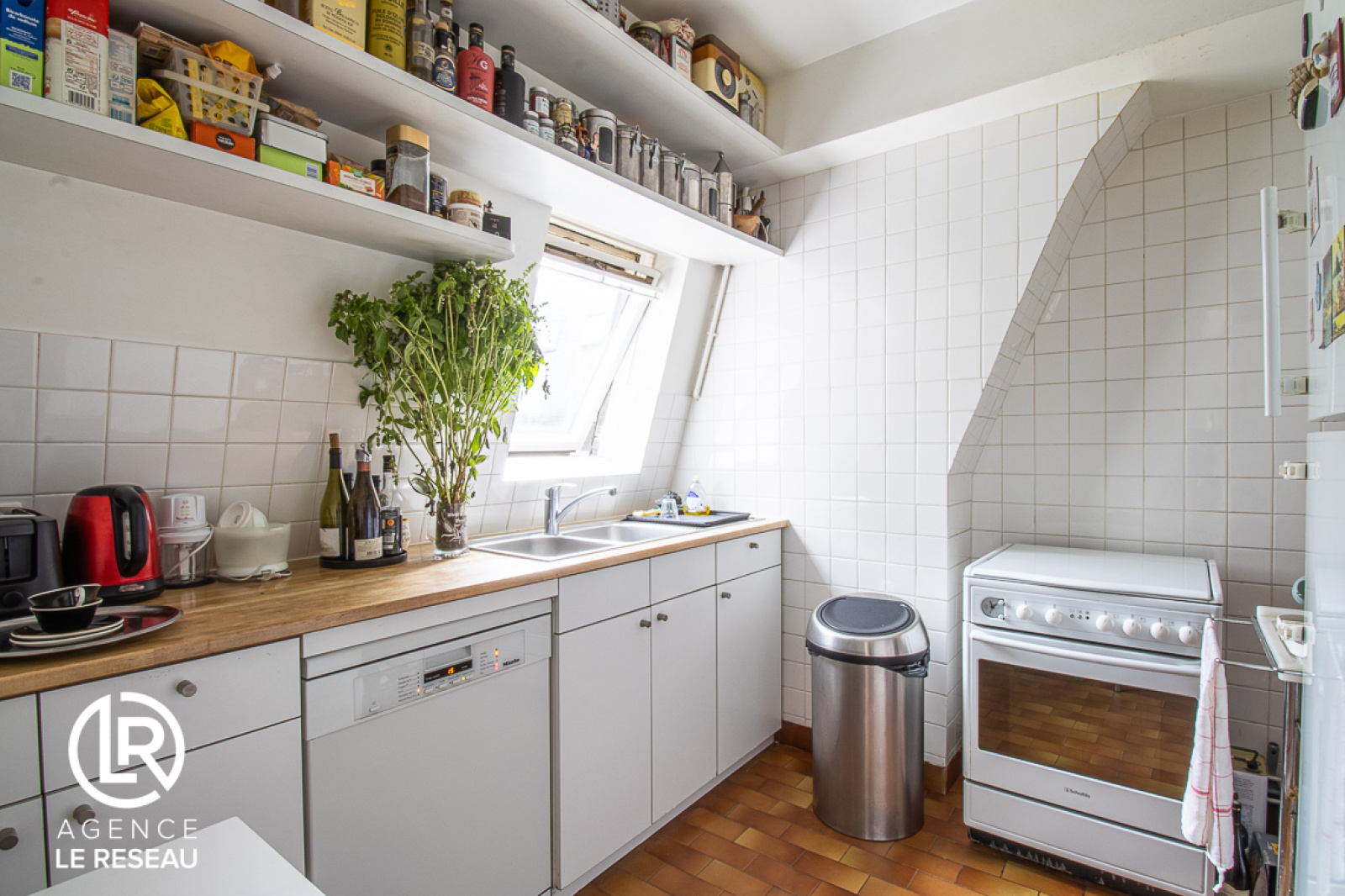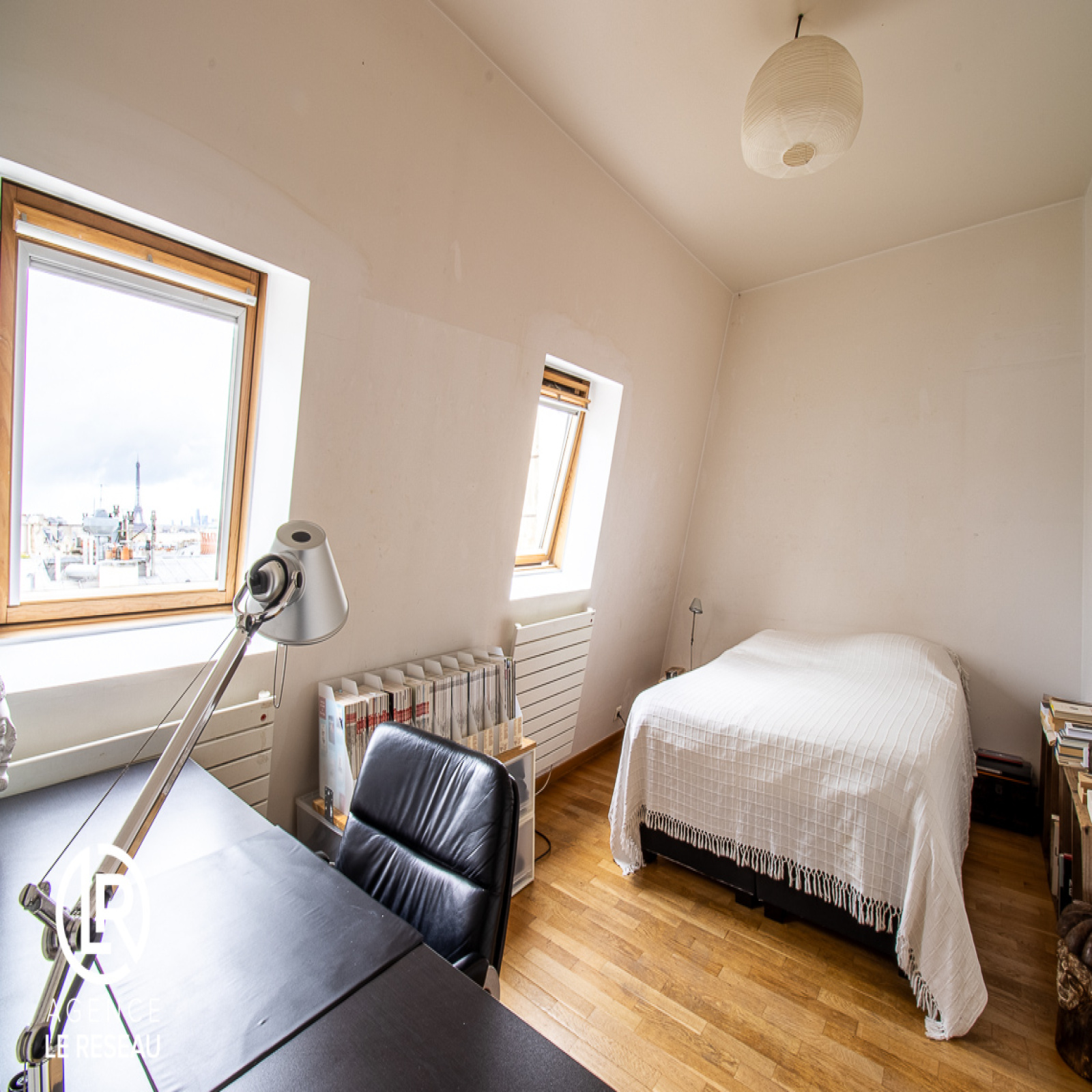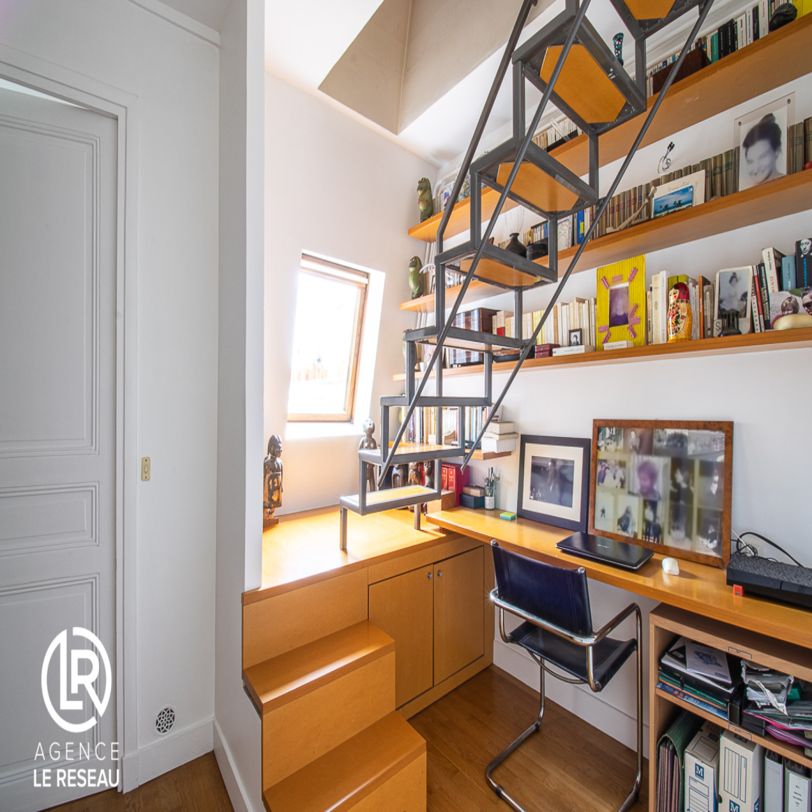 Cet appartement, au calme absolu, est au 7ème et dernier étage avec ascenseur. Il se compose d'une entrée, d'un double séjour, de deux chambres, d'une cuisine séparée, d'une salle de bains, d'un espace bureau, d'un WC séparé et d'une troisième chambre en duplex.
