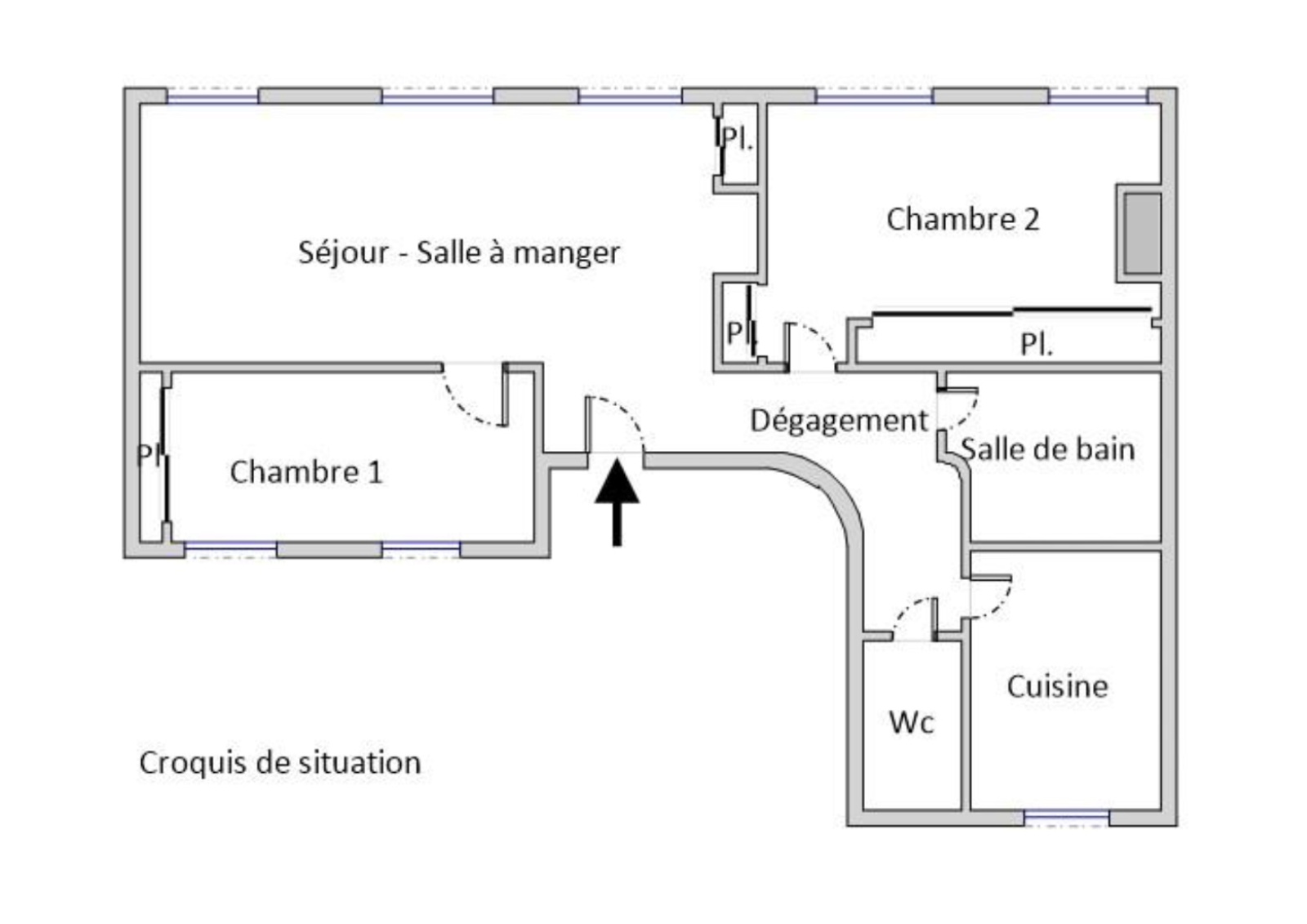 Cet appartement sans perte de place est en parfait état et traversant au 2ème étage sans ascenseur et se compose, d'une entrée avec rangements, d’un double séjour traversant de 31m², d'une cuisine séparée et équipée, de 2 chambres avec rangements. de 12m2 et 14m2, d'une salle de bains, et un WC séparé.