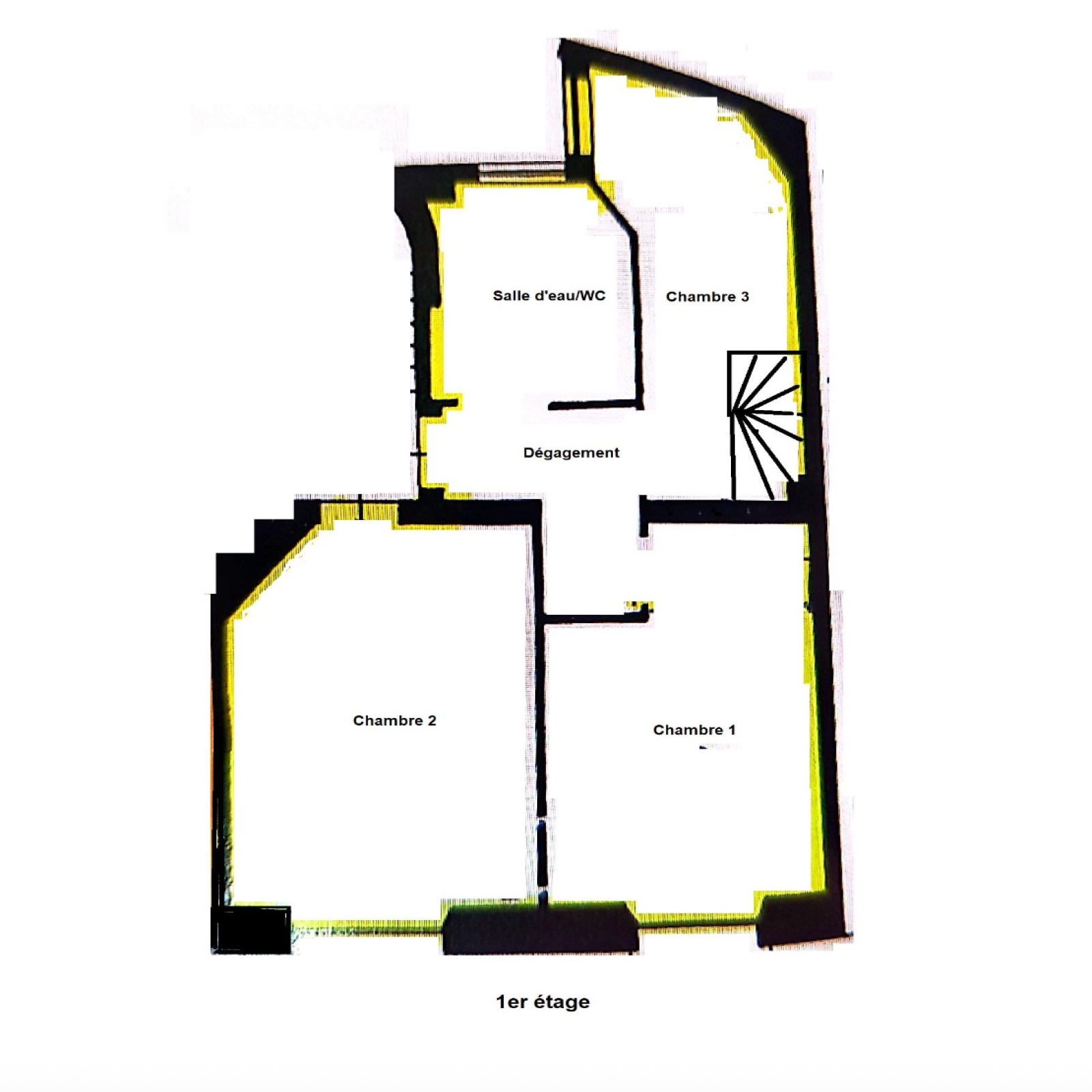 Au premier étage se compose de 3 chambres au calme avec rangements et d'une salle de bains avec WC.