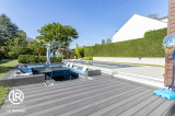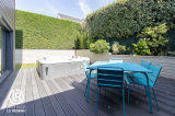 d’une entrée avec rangements, d’un séjour, salle à manger avec sa cuisine américaine aménagée et équipée, le tout faisant une surface de 105m² exposé plein sud, donnant sur un jardin paysager, avec terrasse aménagée et sa piscine, d'une seconde terrasse et son jacuzzi et d'un WC séparé
