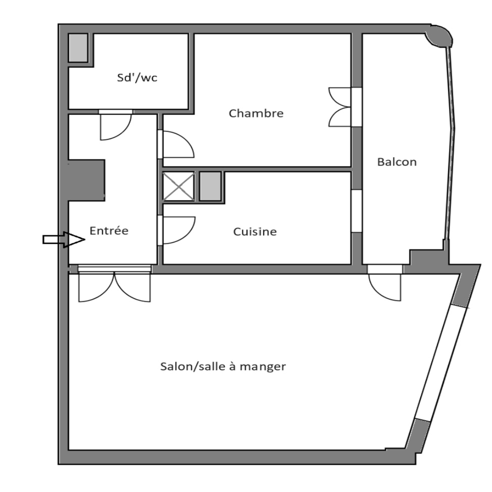 Cet appartement au 2ème étage avec ascenseur bénéficiant d'un plan parfait en étoile se compose, d’une entrée, dun séjour lumineux de 27m² donnant sur le balcon de 10m2 exposé plein sud, d'une cuisine séparée ( possibilité cuisine US), d'une chambre de 10m² avec rangements et d’une salle d’eau avec WC.