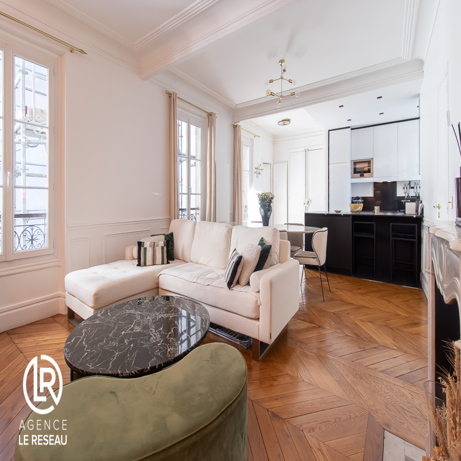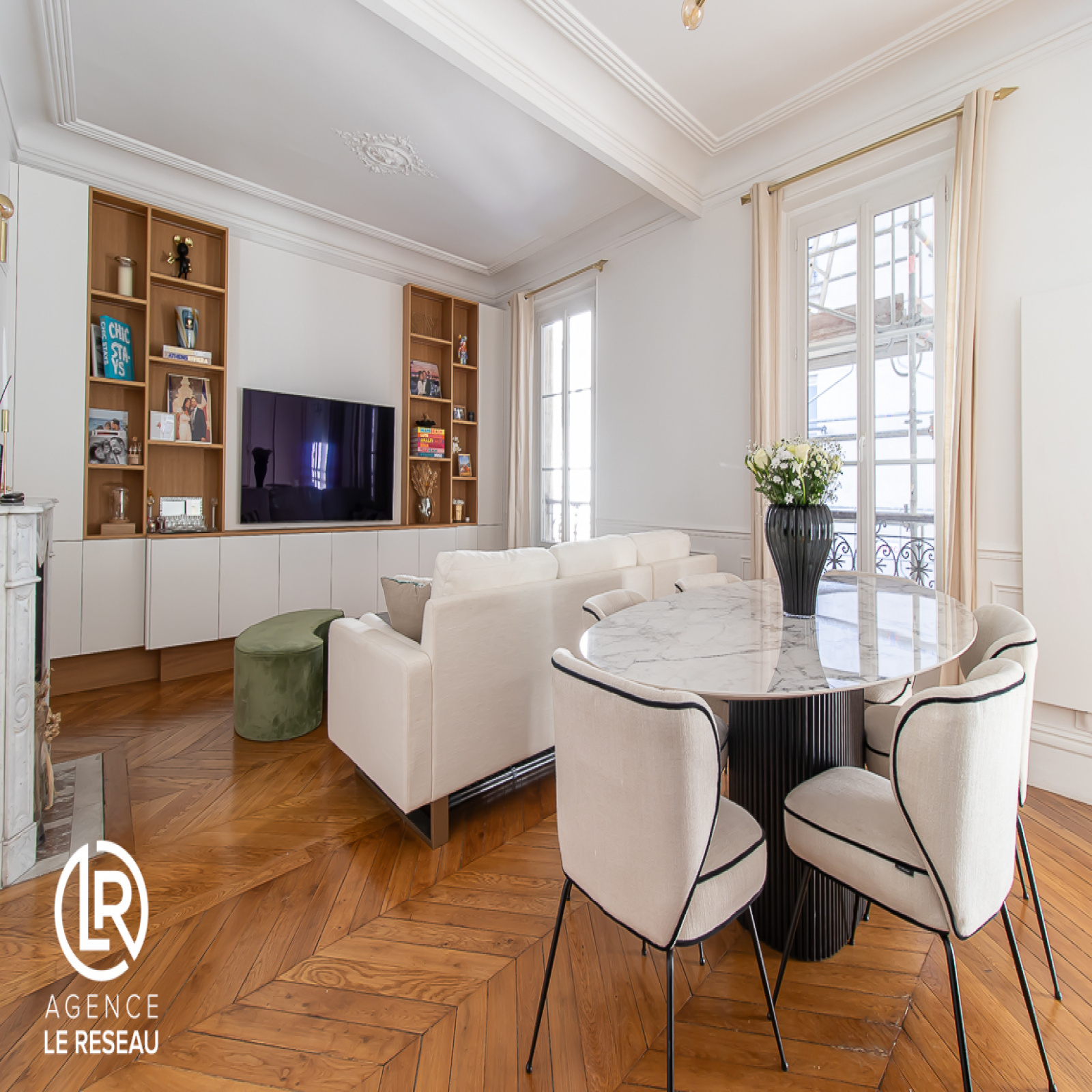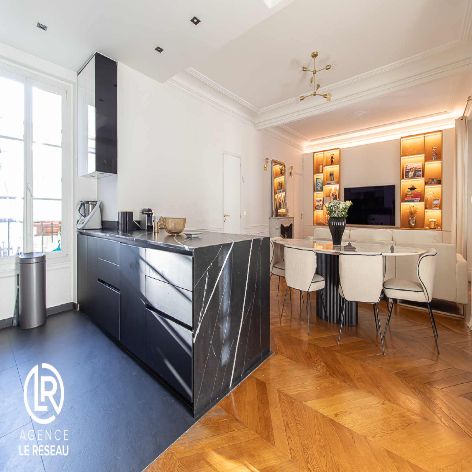 De conception moderne, le bien a bénéficié d'une rénovation complète et dispose notamment de parquet massif, de moulures, de cheminée et de nombreux rangements sur mesure.