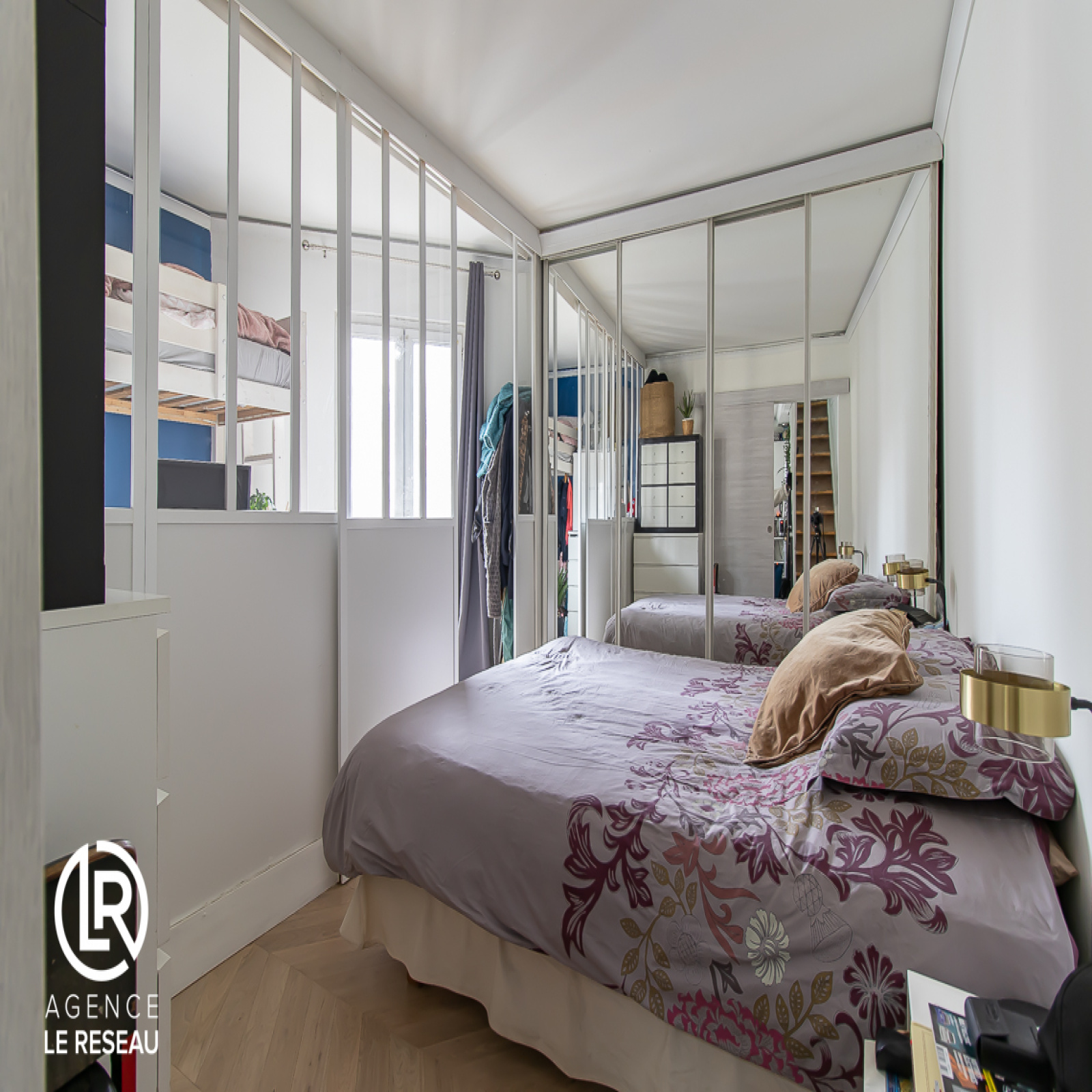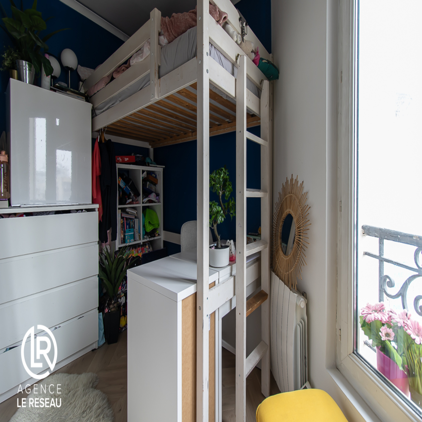 Ce bien lumineux bénéficiant d’un plan parfait, est au 4ème et dernier étage sans ascenseur. Il se compose d’une entrée avec rangements, d’un séjour lumineux avec sa cuisine américaine équipée, le tout faisant une surface de 20m2, d'une chambre au calme avec rangements de 10m2 avec sa salle d'eau et WC, d'une seconde chambre et d'un bureau (possibilité chambre bébé).