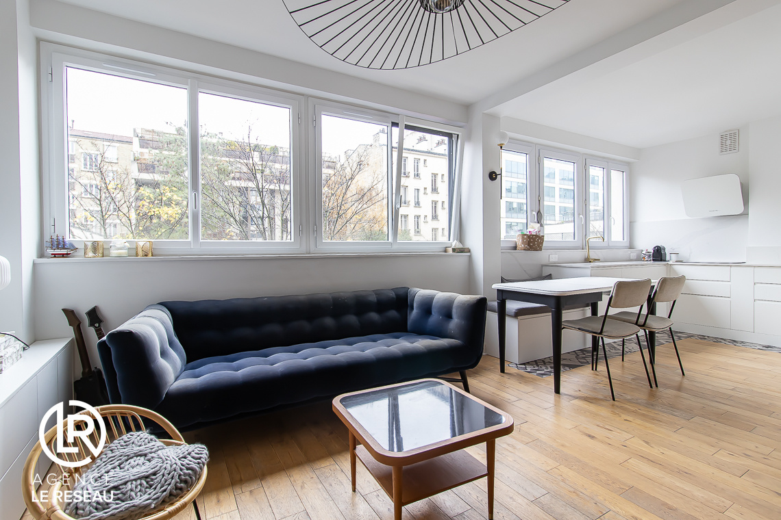 Quartier Villiers-Louise Michel. L'Agence le Réseau, vous propose à la vente cet appartement familial de 92m² avec 3 chambres, au sein d'une copropriété bien entretenue, situé au calme rue de Villiers, avec cave et parking exterieur, à 350m du metro Louise Michel et au pied de tous les commerces.