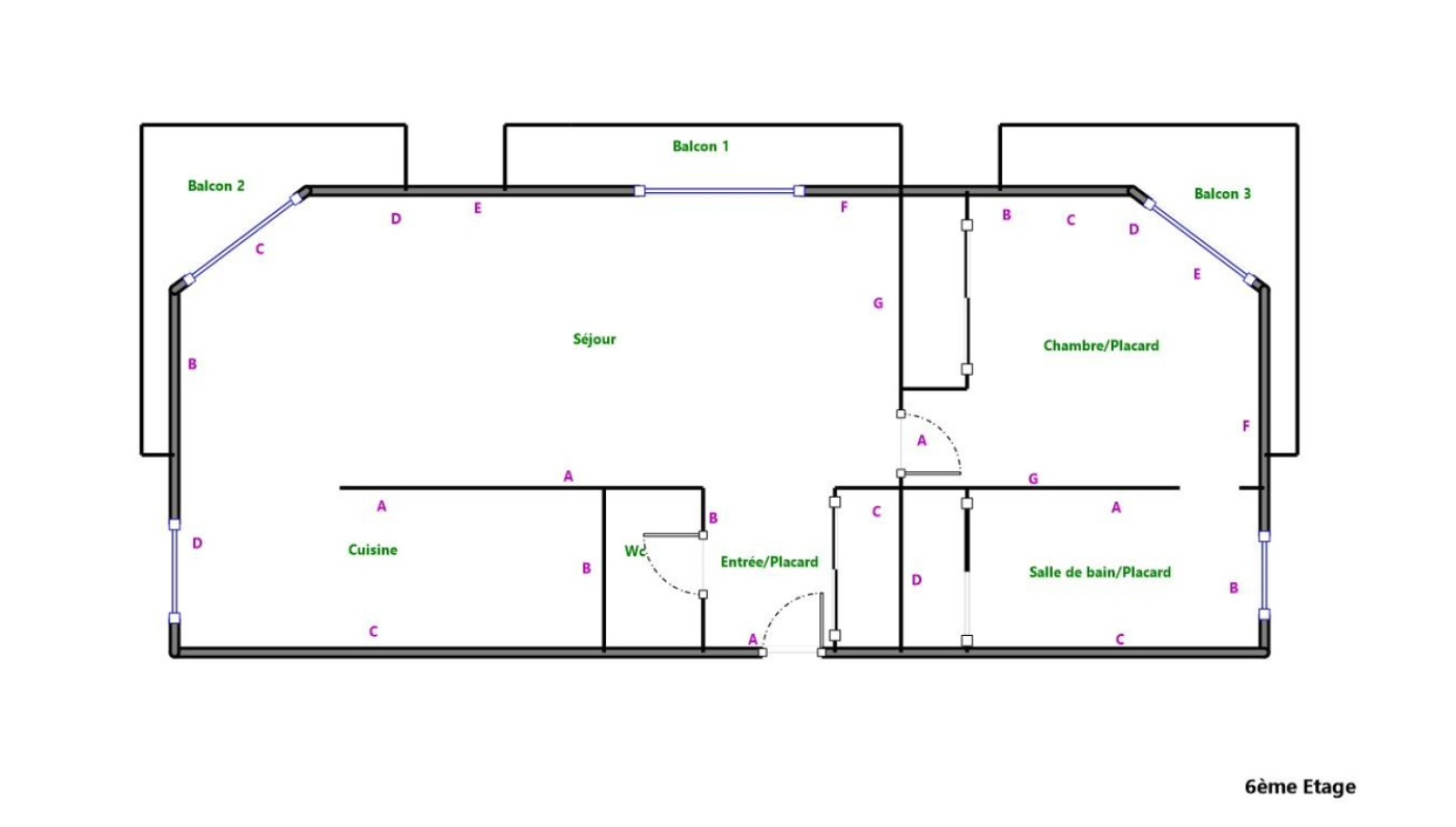 Ce bien calme et lumineux, au 6ème et dernier étage sans ascenseur se compose, d’une entrée avec rangements, d’un séjour lumineux avec sa cuisine semi-ouverte et équipée, le tout faisant une surface de 25m2 donnant sur le balcon exposé plein sud, d'une chambre au calme avec rangements donnant sur le second balcon, d'une salle de bains et d'un WC séparé.
