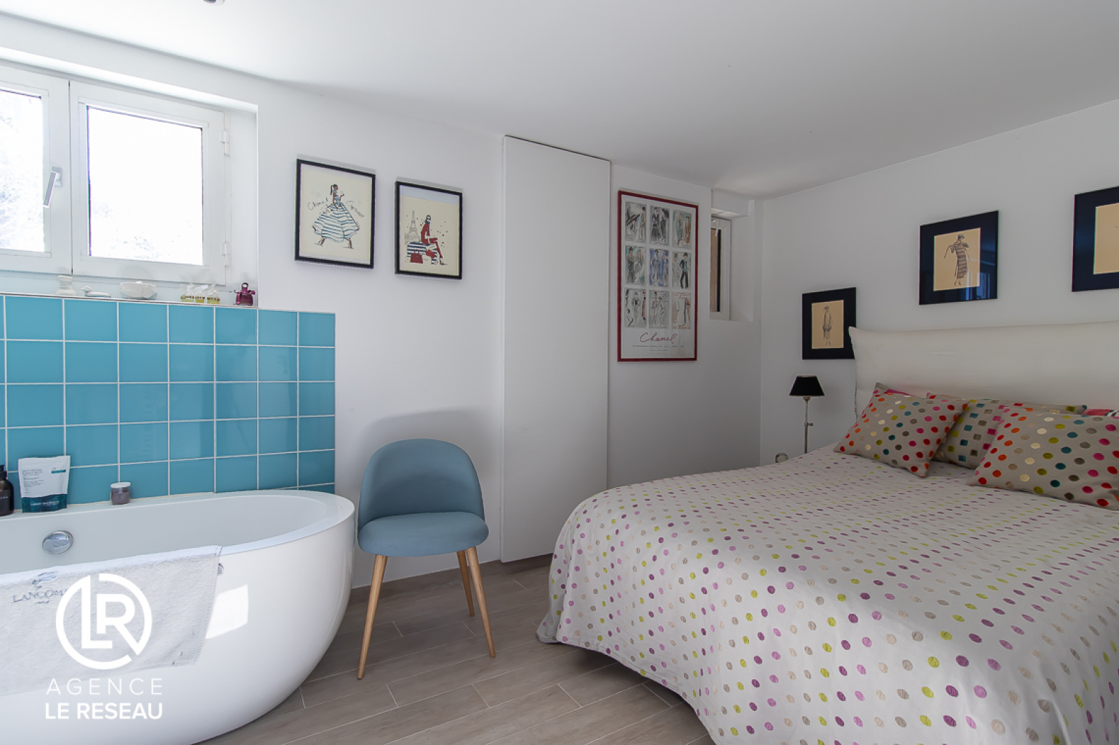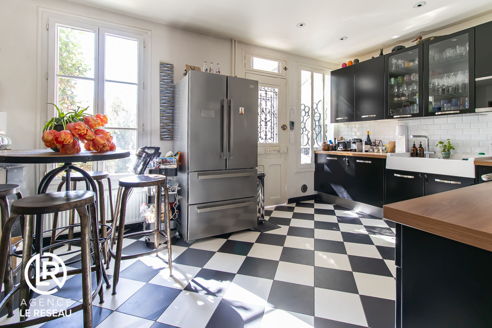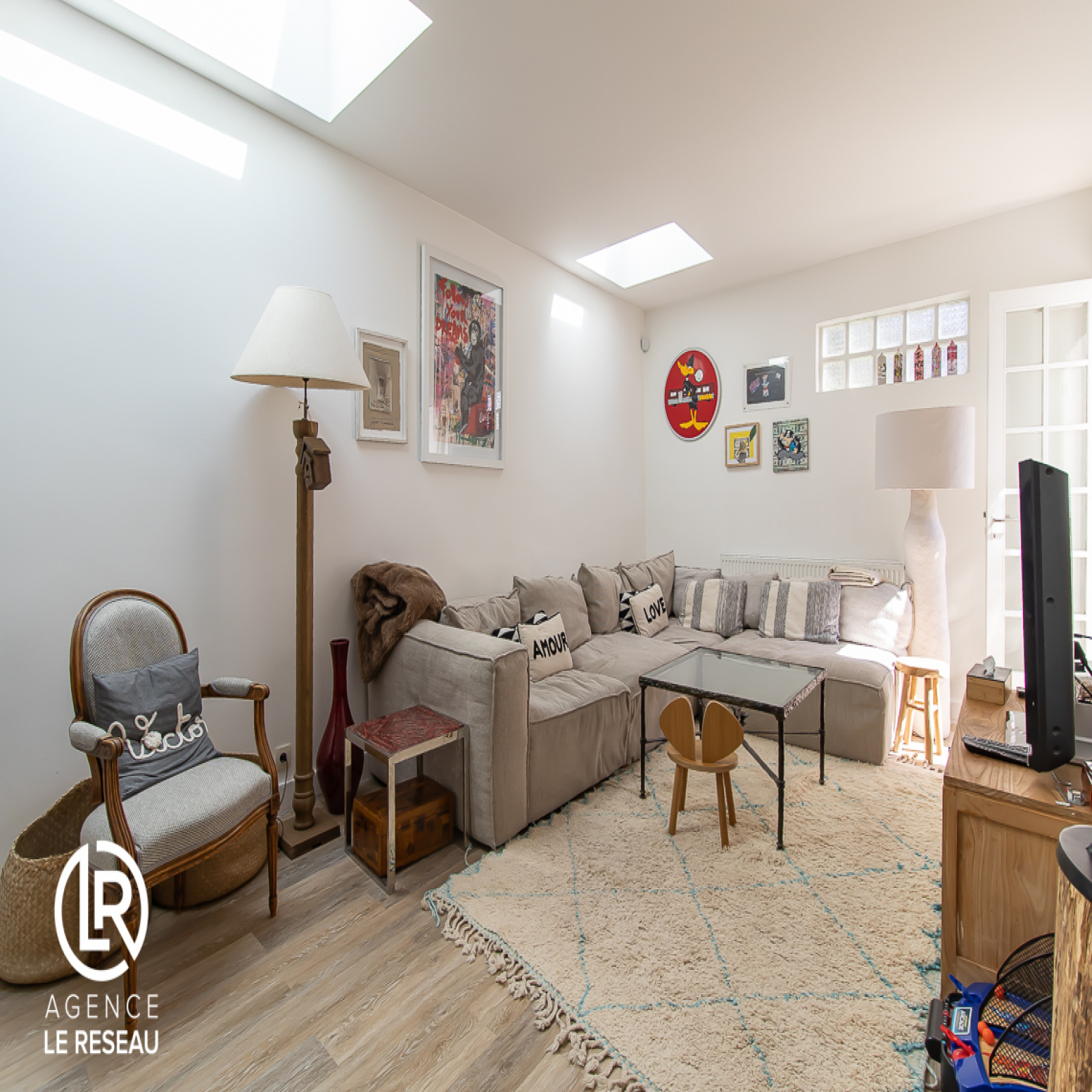 De conception moderne, la maison entièrement rénovée, bénéficie également de nombreux rangements sur mesure, de parquet massif, de moulures et de fenêtres en double vitrage avec stores électriques.
