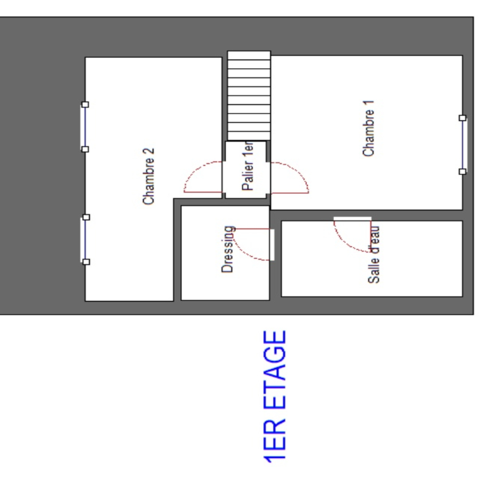 Au premier étage: se compose d'un palier desservant 2 chambres au calme avec rangements d'une salle d'eau, d'un dressing d'une salle d'eau avec WC, et une terrasse de 50m2