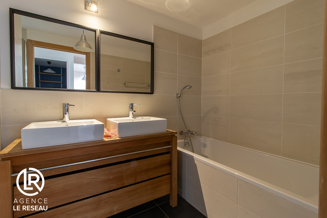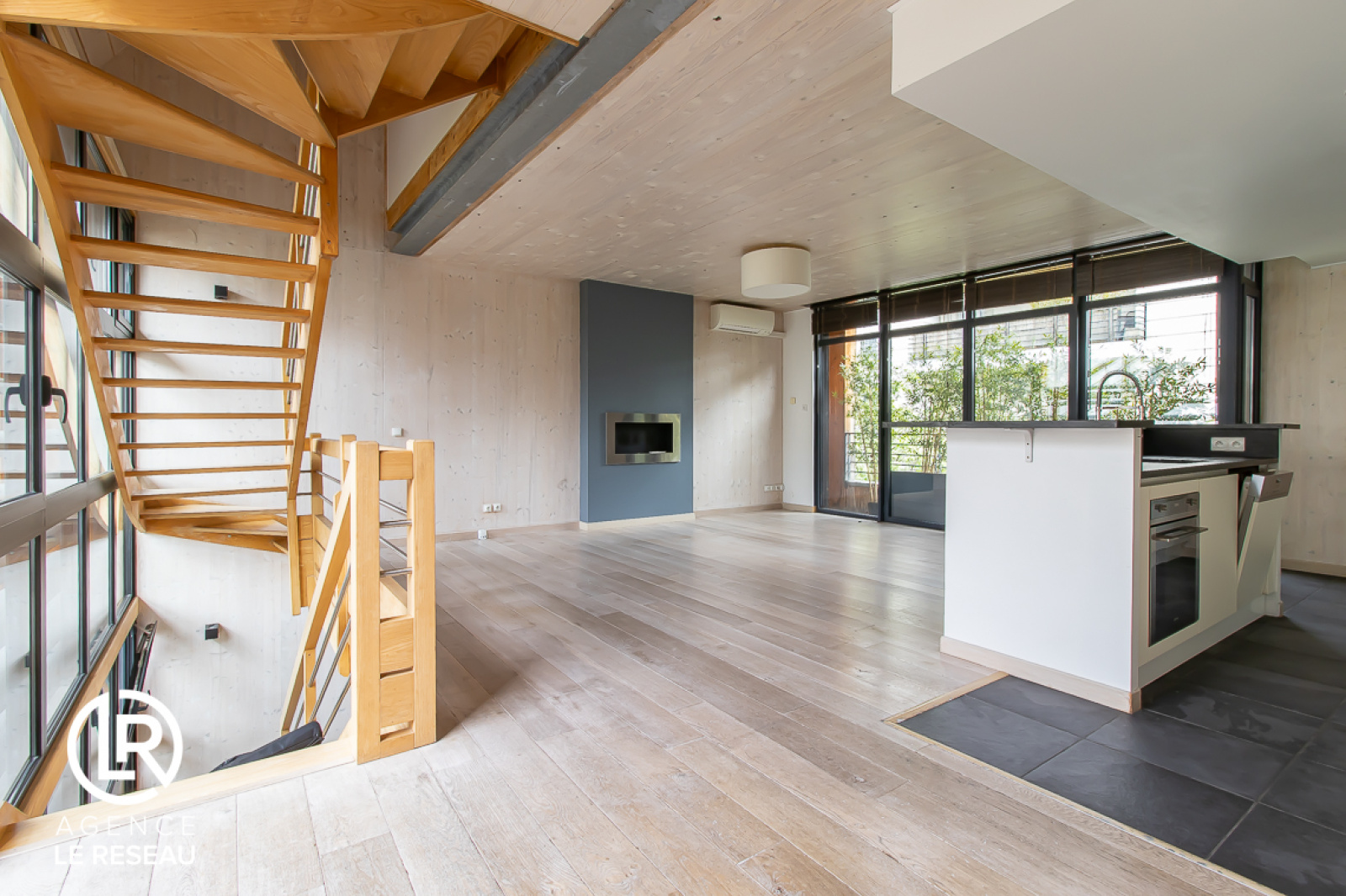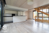 La maison se compose également d'un séjour traversant lumineux avec sa cuisine américaine aménagée et équipée, le tout faisant une surface de 45m² exposé plein sud, donnant sur une seconde terrasse.