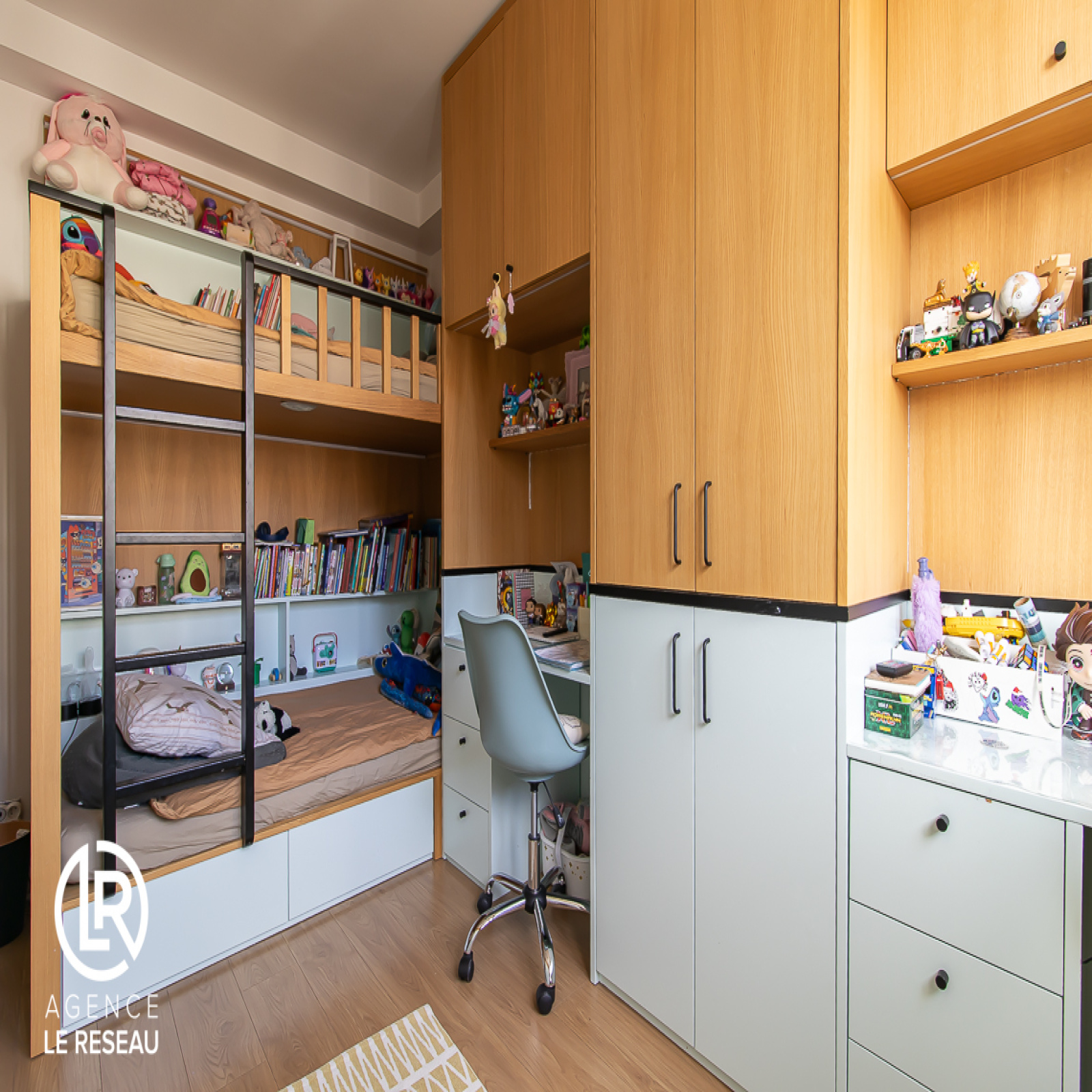 De conception moderne, le bien bénéficie également de parquet massif, de fenêtres en double vitrage, la climatiisation ainsi que de nombreux rangments.