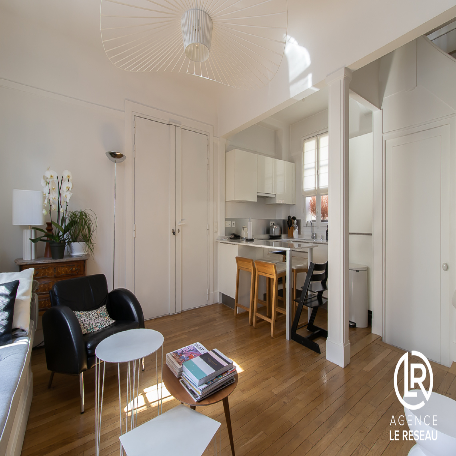 Le bien en parfait état se compose d'un séjour traversant avec sa cuisine américaine équipée, le tout faisant une surface de 25m2 exposé sud-est.
