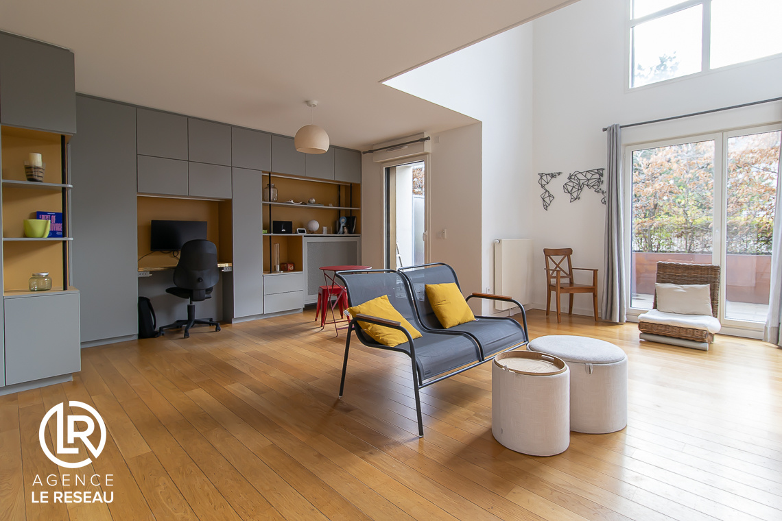 L'Agence le Réseau vous propose à la vente ce sublime Duplex familial au calme de 125m2 avec terrasse et jardin de 180m2 avec 4 chambres, dans une résidence grand standing de 2019, idéalement située au calme dans un quartier résidentiel et recherché à proximité des commerces, et à 200m de la Gare de Rueil (RER A).