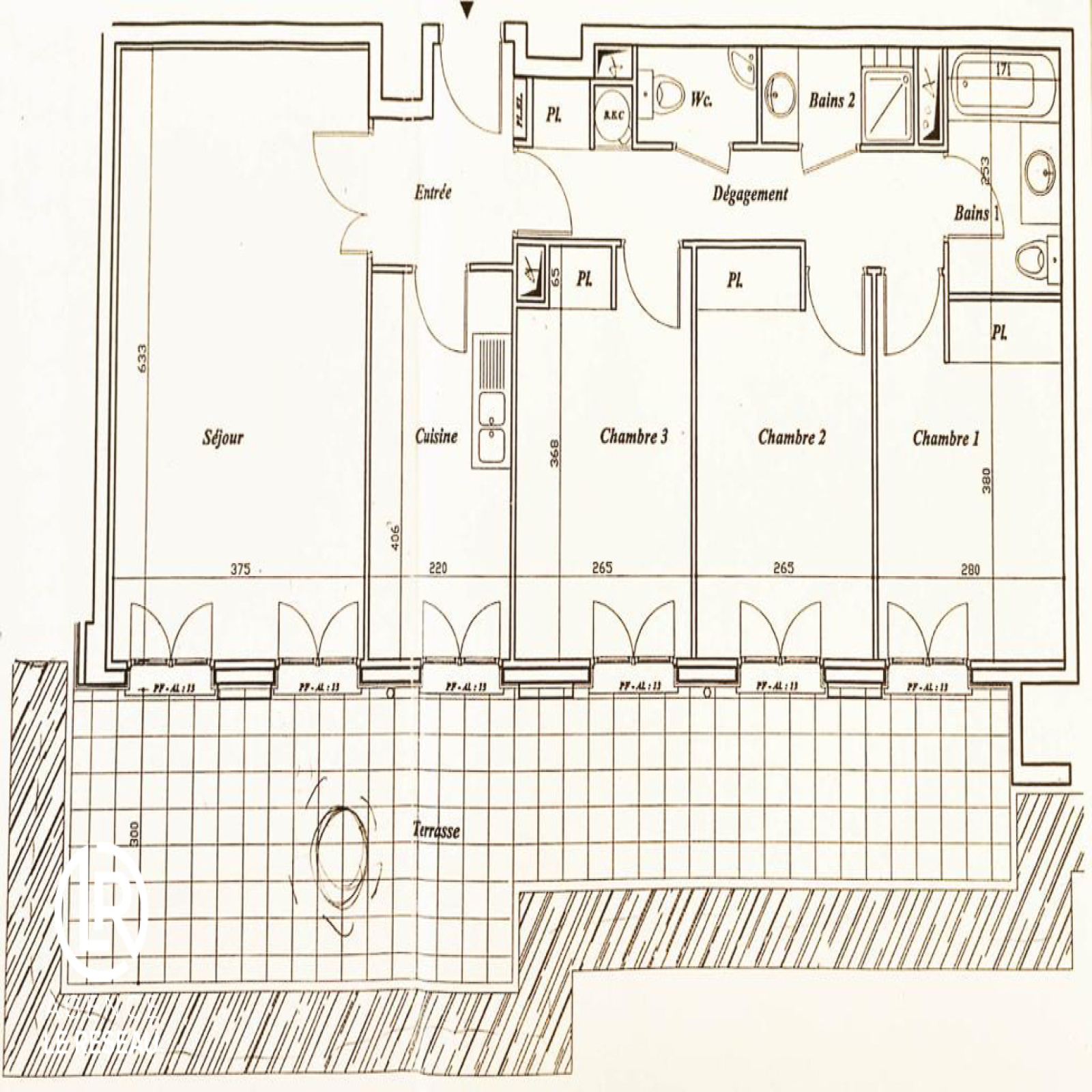 Ce bien en parfait état au calme, est au rez-de-jardin et se compose, d’une entrée avec rangements, d’un séjour avec sa cuisine américaine aménagée et équipée, le tout faisant une superficie de 38m2 donnant sur la terrasse paysager au calme sur jardin de 45m2 exposé plein sud, de 3 chambres de 11m2 avec rangements donnant également sur la terrasse, d'une salle d'eau, d'une salle de bains et d'un WC séparé.