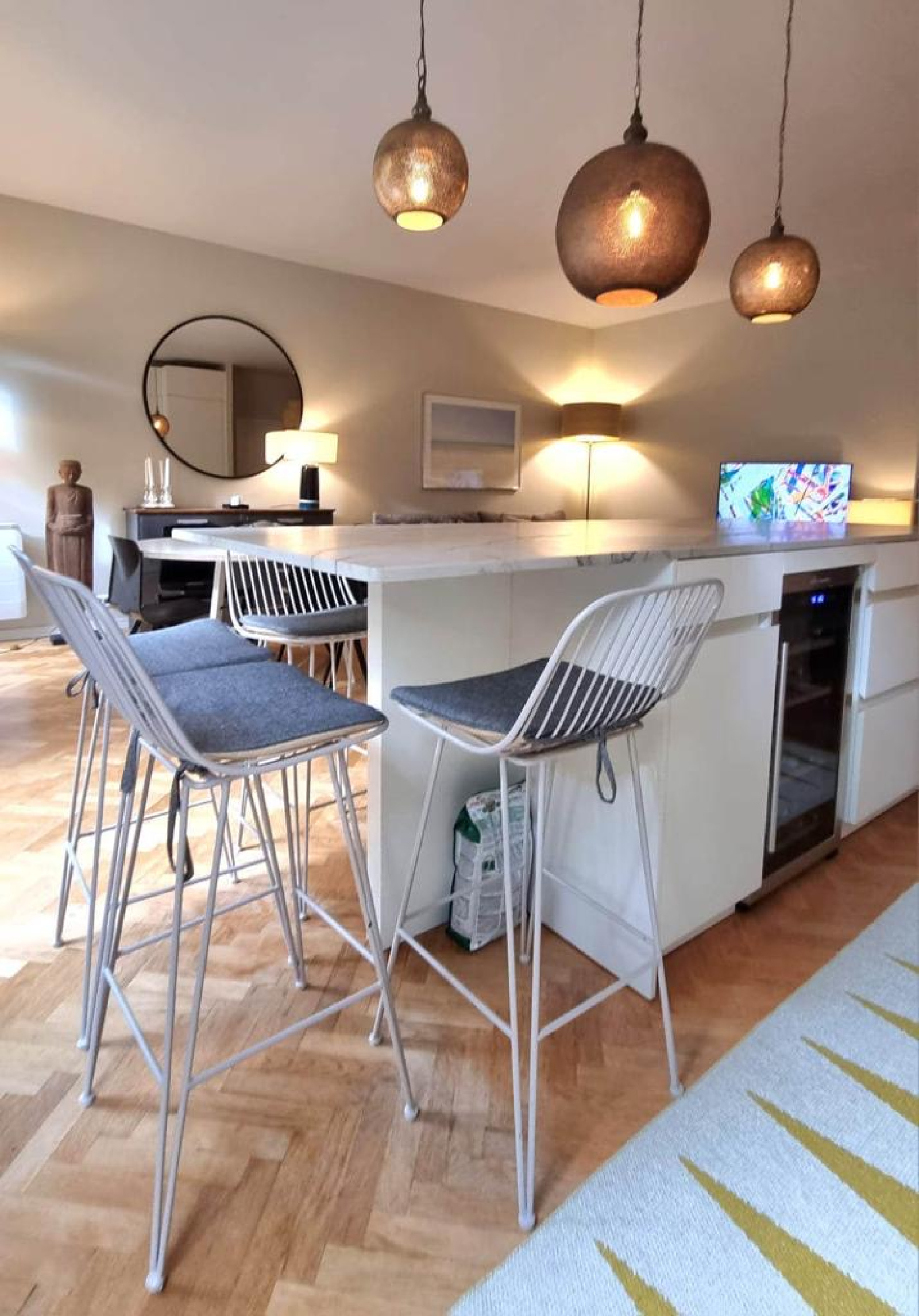 De conception moderne, le bien a bénéficié d'une rénovation complète : (parquet massif, meubles sur mesure, peintures, etc..). L’appartement est par ailleurs équipé de fenêtres en double-vitrages avec stores électriques, d'une belle hauteur sous plafond de 2.80m ainsi que de nombreux rangements sur mesure.