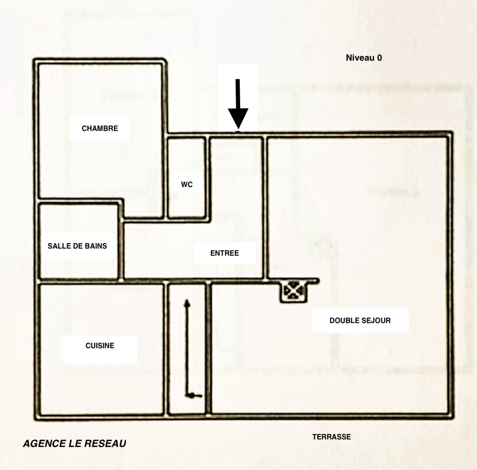 Au premier niveau: d'un double séjour donnant sur une vaste terrasse, d'une salle de bain, WC, une chambre et une cuisine séparée.