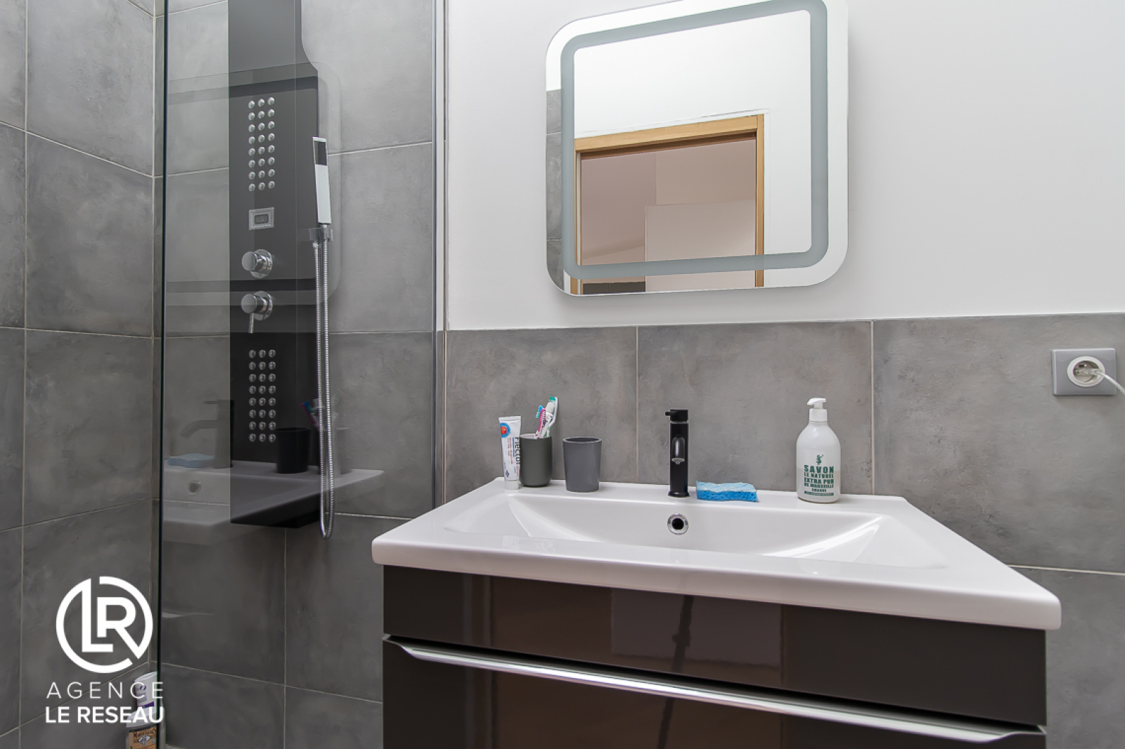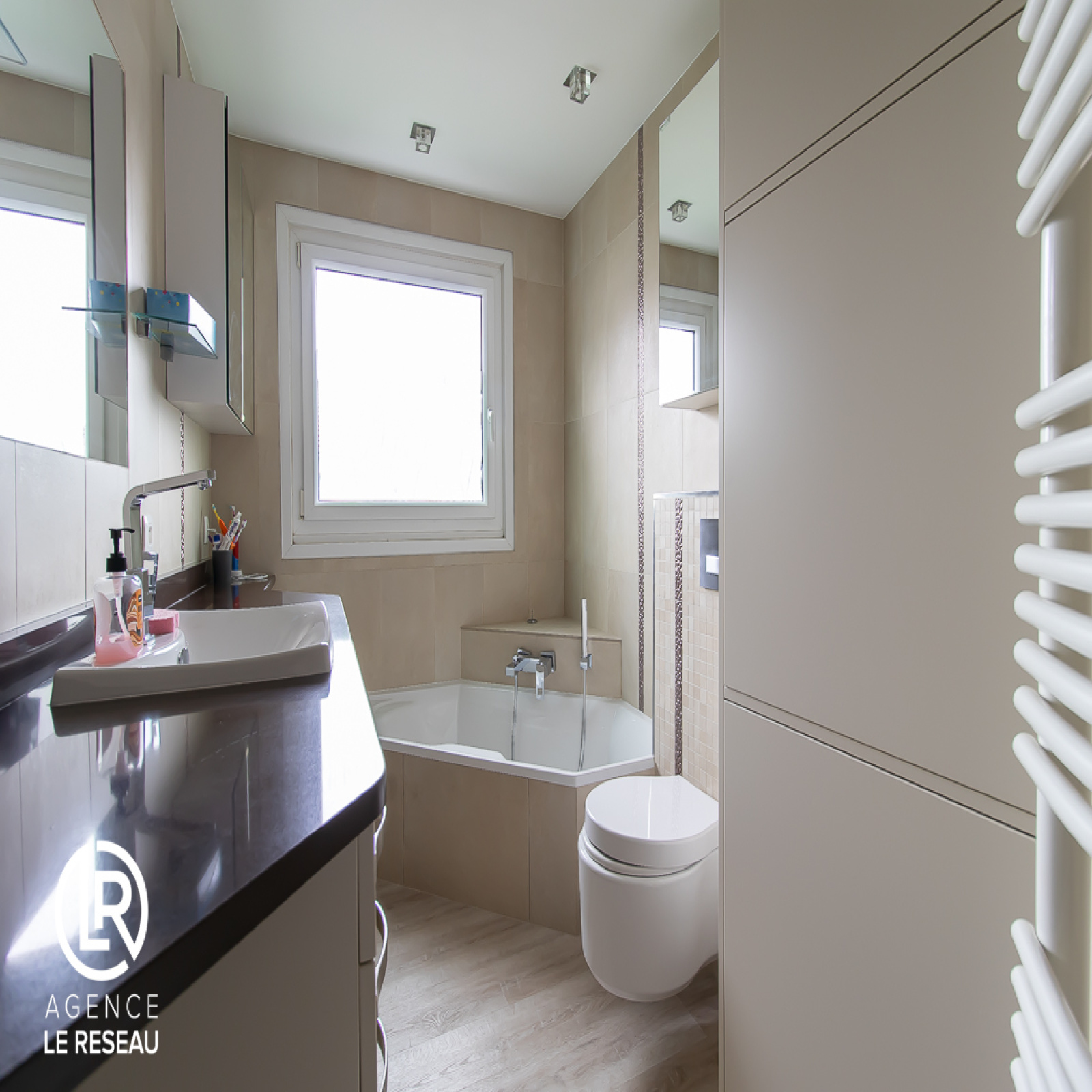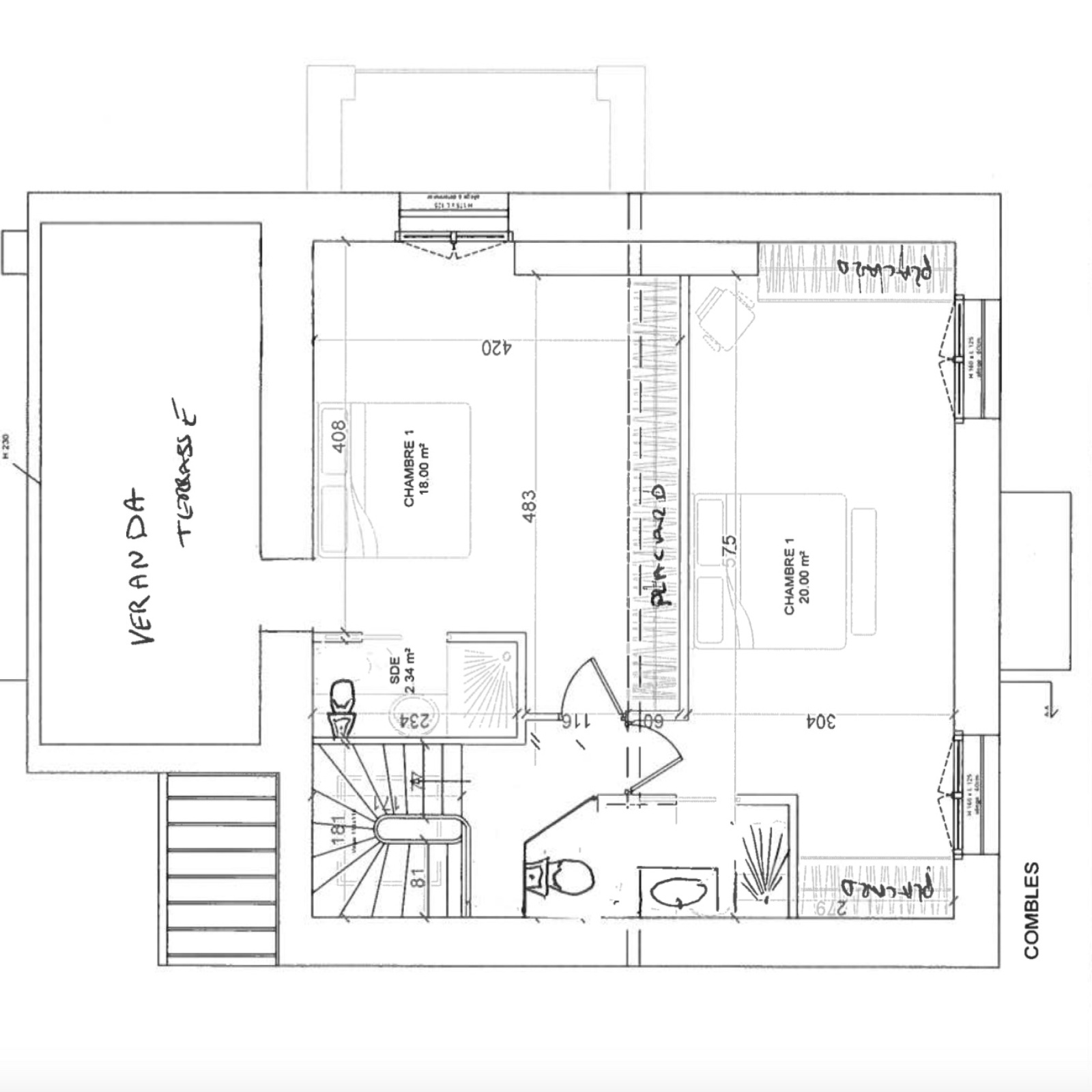 A l'étage se compose de 3 chambres au calme avec rangements, et une suite parentale de 16m2 avec sa salle d'eau, d'une salle de bains avec douche à l'italienne, d'un sauna et un WC.