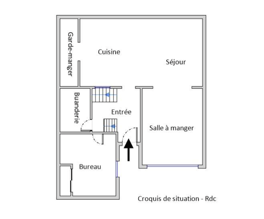 Au premier niveau: D'une entrée, d'un double séjour, d'une cuisine séparée avec cellier, buanderie, bureau.