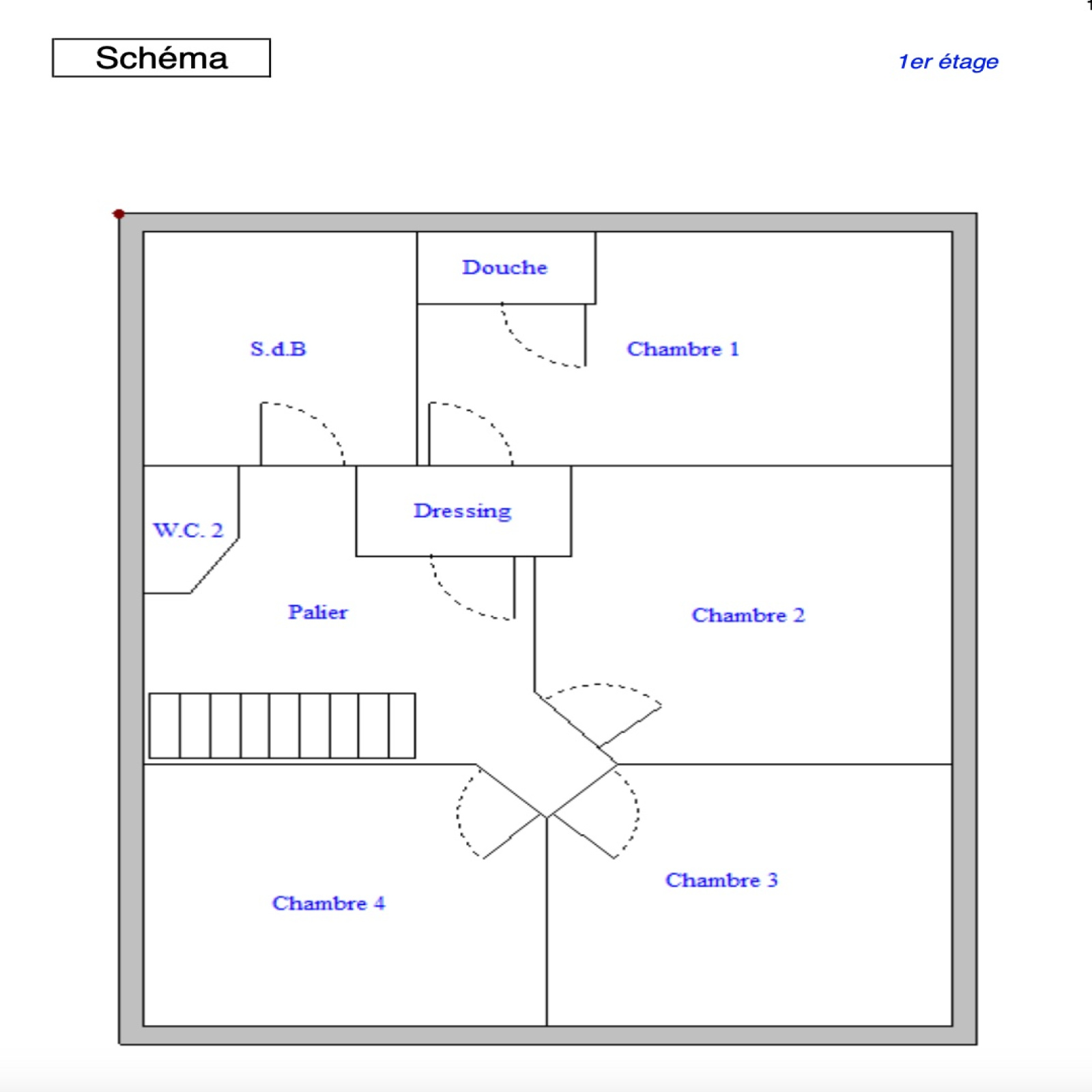 A l'étage: se compose de 4 chambres au calme avec rangements donnant sur une terrasse, dont une suite parentale avec sa salle d'eau, une salle de bains ett un WC séparé.