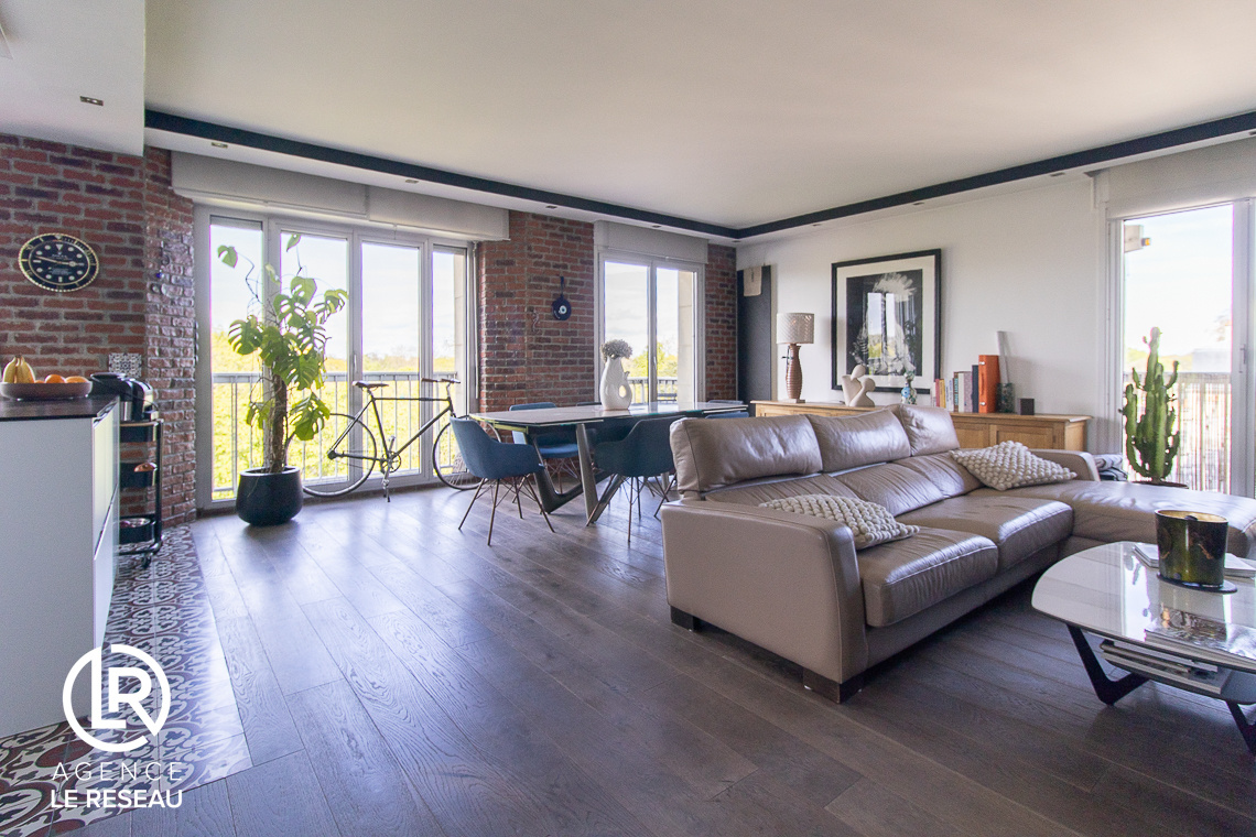 Quartier recherché. L'Agence Le Réseau vous propose à la vente cet appartement au dernier étage en parfait état et lumineux de 105m², (104.78m2 Loi Carrez). L'appartement sans vis-à- vis avec une vue imprenable sur le Bois de Vincennes, se trouve au sein d’une résidence standing avec cave et double parking en supplément situé dans un quartier très recherché et à 500m du métro Charenton Ecoles et au pied de tous les commerces.