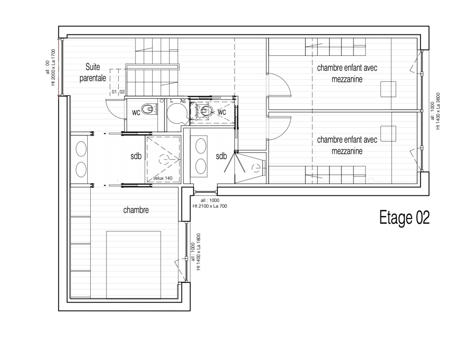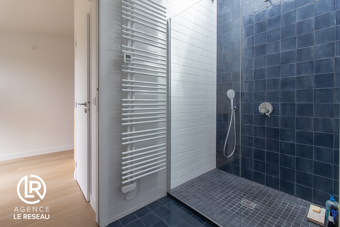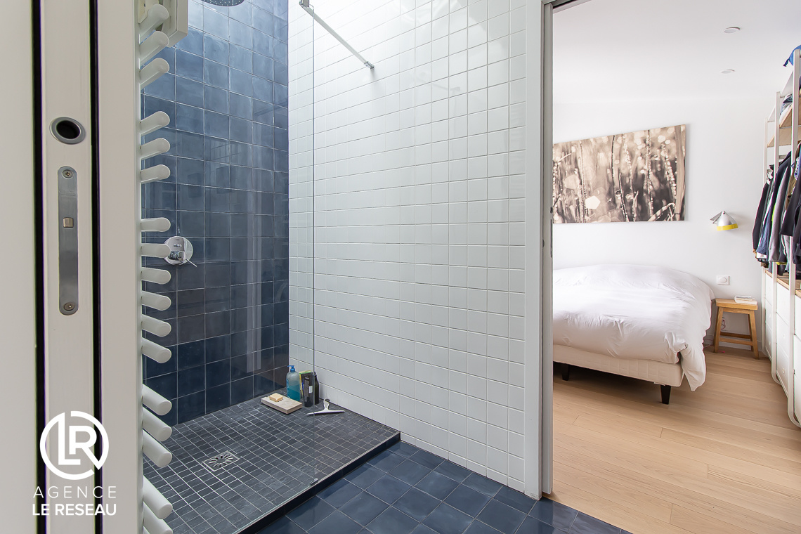 Un demi palier accueil une suite parentale avec sa salle d'eau et douche à l'italienne et un WC séparé.