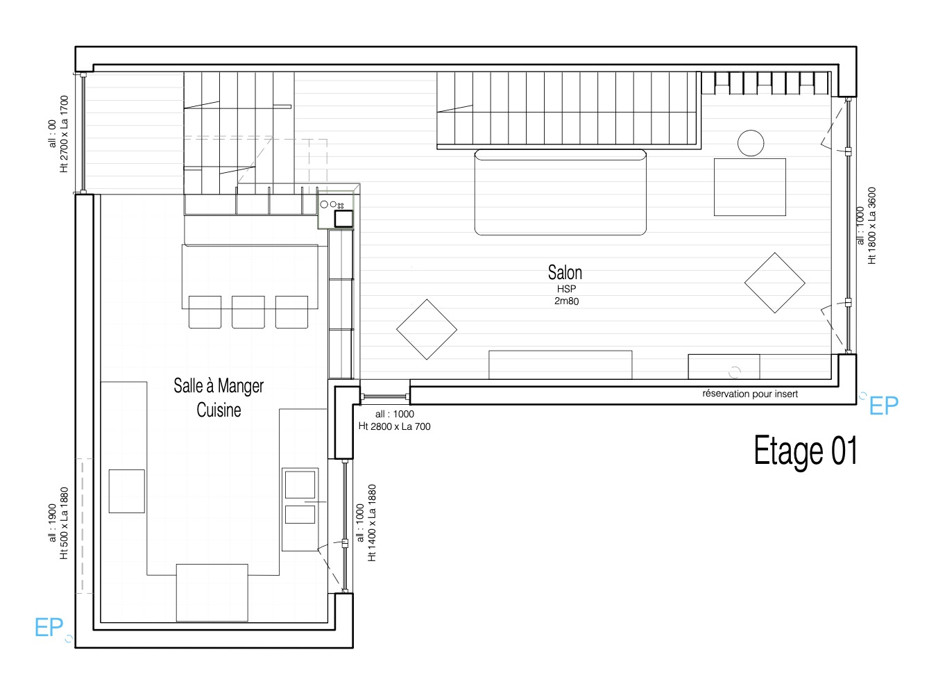 Au premier étage: d'un séjour traversant, d'une salle à manger avec sa cuisine dinatoire aménagée et équipée.