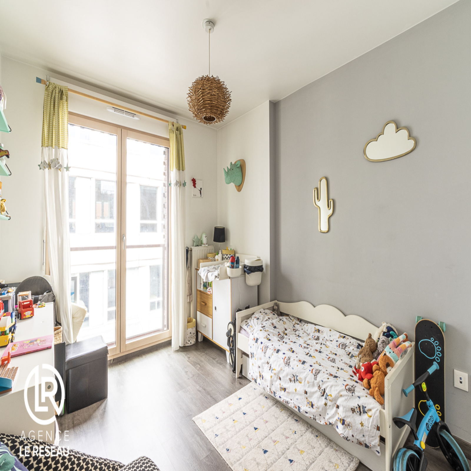 L'Agence le Réseau avec une commission fixe de 8500 euros vous propose à la vente ce bien familial de 76m² (75,77m² Carrez) au calme absolu, situé rue du Général Compans dans une copropriété de standing de 2017, à 3min du RER E Pantin et 10min du métro Hoche Ligne 5.
